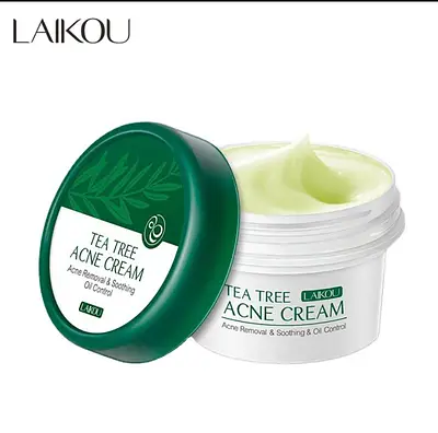 Крем для обличчя LAIKOU Tea Tree Acne Cream на основі рослинних екстрактів ефективно бореться з прищами, вуграми, почервоніннями, надає лікувальну дію на проблемну шкіру. Крем допоможе усунути існуючі запалення та запобігає появі нових, регулює роботу сальних залоз, зменшує жирність шкіри, запобігає закупорці пор, пом'якшує та відновлює епідерміс.