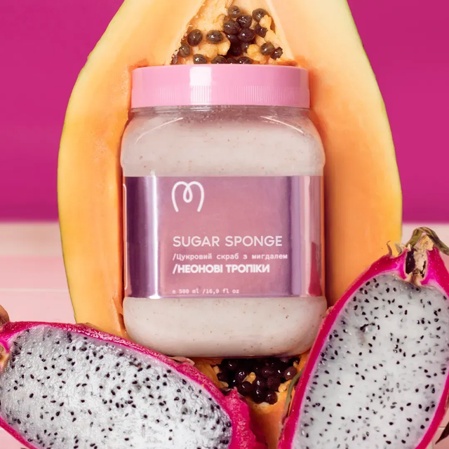 Наш ніжний натуральний скраб "Неонові тропіки" пахне спогадами про яскраве насичене літо.