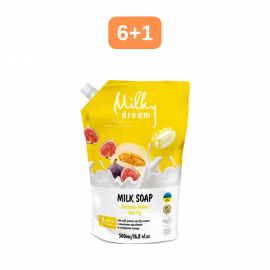 АКЦІЯ 6+1Купуй 6 шт Рідке крем-мило Milky Dream дой-пак 500 мл та отримуй 1 шт у подарунок!Діє до 30.04.2026Рідке крем-мило Milky Dream дой-пак 500 мл !!!РРЦ 49 грн Рідке крем-мило "Ароматна диня та інжир", дой-пак 500 мл Milky Dream Молочне* Крем-мило «Ароматна діня та інжир». З молочними протеїнами та екстрактом інжиру...