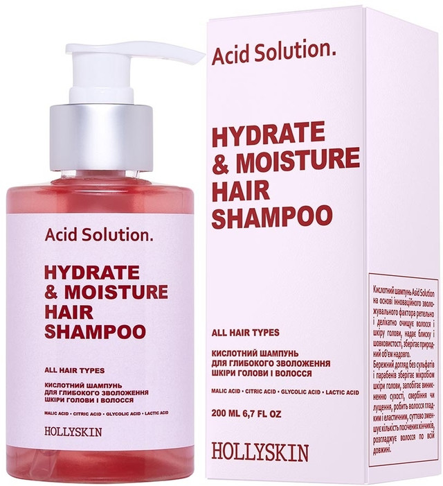 Кислотний шампунь Acid Solution на основі інноваційного зволожувального фактора ретельно і делікатно очищує волосся і шкіру голови, надає блиску і шовковистості, зберігає природний об'єм надовго.