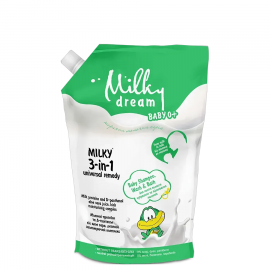 Універсальний засіб 3в1 "Для купання,миття волос та підмив.малюків" 0+, Milky Dream дой-пак 450 мл