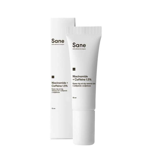 Крем під очі від темних кіл і набряків з кофеїном Sane — це ідеальна комбінація активних інгредієнтів, які працюють разом, щоб забезпечити твоїй шкірі під очима необхідну підтримку. Легка кремова текстура швидко вбирається, не залишаючи жирного блиску, а також дарує відчуття комфорту.